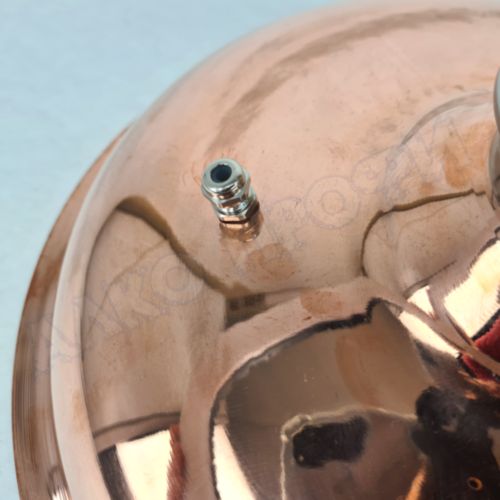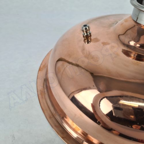 Медная купольная крышка это крышка для перегонного куба кастрюльного типа Подходит как к медным, так и к нержавеющим бакам. Имеет купольную форму, что значительно увеличивает объём паровой зоны и увеличивает максимальный объём перегоняемого сусла. Медь нейтрализует соединения серы, что значительно улучшает качество зерновых и фруктовых дистиллятов, а так же придаёт им более мягкий вкус. Так же взаимодействие с медью раскрывает аромат благородных напитков.