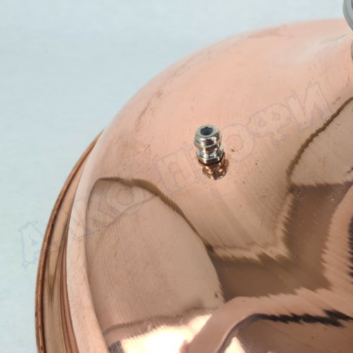Медная купольная крышка это крышка для перегонного куба кастрюльного типа Подходит как к медным, так и к нержавеющим бакам. Имеет купольную форму, что значительно увеличивает объём паровой зоны и увеличивает максимальный объём перегоняемого сусла. Медь нейтрализует соединения серы, что значительно улучшает качество зерновых и фруктовых дистиллятов, а так же придаёт им более мягкий вкус. Так же взаимодействие с медью раскрывает аромат благородных напитков.