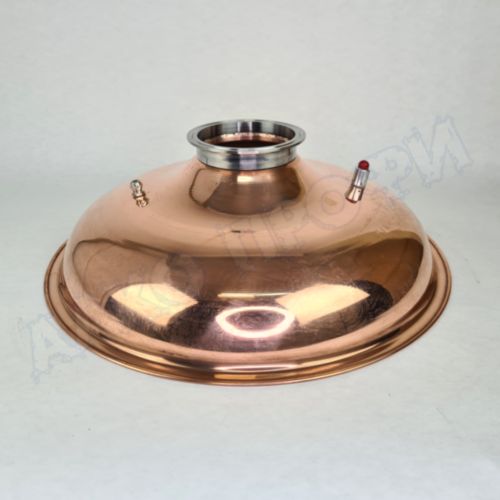 Перегонный куб из пищевой нержавеющей стали AISI 304 кастрюльного типа с крышкой из меди отечественного производства. Используется с дистилляторами (самогонными аппаратами) в качестве емкости нагрева спиртосодержащих жидкостей.