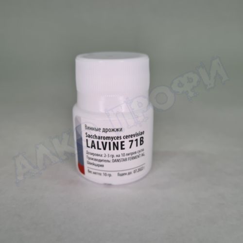 дрожжевые ароматы. Брожение происходит спокойно. Температура сбраживания средняя (15°C - 30°C). В дрожжах Lalvin 71B отсутствуют генетически модифицированные организмы и глютен.