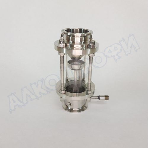 С помощью диоптра с узлом отбора очень удобно устанавливать флегмовое число, контролировать “предзахлебные” состояния, не допуская “захлеб” колонны, и визуально контролировать весь процесс.