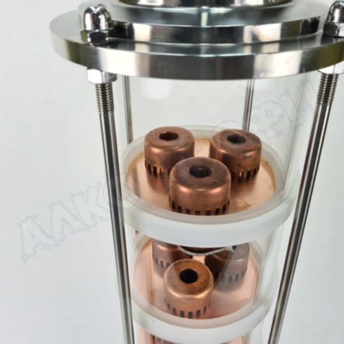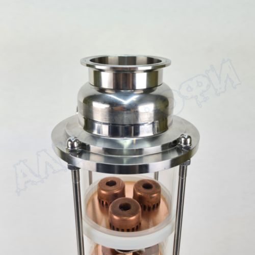 Колпачковая колонна (флейта) 4"(с клампом 2") представляет из себя флейту с тарелками и стёклами 4" и с фланцами с выходом 2". То есть вы получаете размер и мощность колонны 4", но с выходом 2". Кламп 2" универсален и совместим с аппаратами любого производителя.