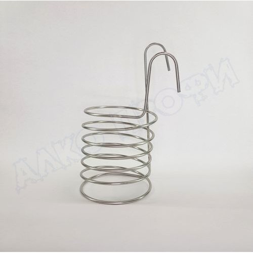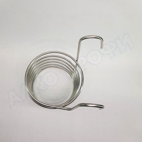 Очень удобный и практичный девайс. Предназначен для охлаждения горячего сусла, путем подачи проточной воды сквозь него. На один конец трубки одевается шланг с крана холодной воды, на второй шланг на слив. Проходя по охладителю, вода нагревается, забирая тепло из сусла.