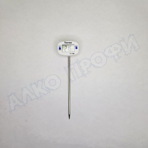 Термометр электронный поворотный. Обладает длинным щупом из нержавеющей стали. Экран поворачивается на 180 градусов, что очень удобно при использовании на кубе или колонне.