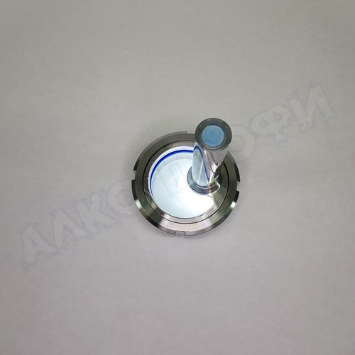 Окно оснащено фонариком в нержавеющем корпусе. Как правило в рабочей ёмкости при перемешивании продукта темно. Фонарик позволяет подсветить и увидеть более детальную картину. Он прост в эксплуатации и крепится к окну на резьбе. Это позволяет установить или снять его в любой момент. Фонарик вкручивается в верхнюю часть окна, которая находится над стеклом герметична. Поэтому снятие фонарика не влияет на герметичность и не требует уплотнения.